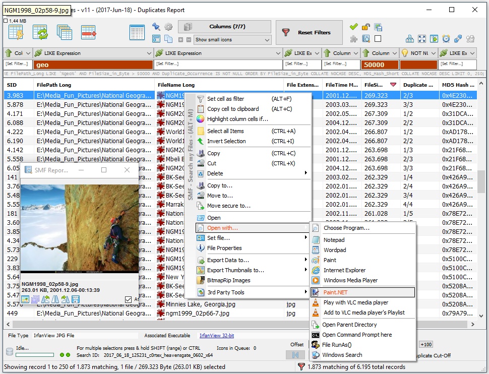 - plus the file preview functionality of the report (jpg, pdf, mpg…, all previews supported by Windows Explorer),