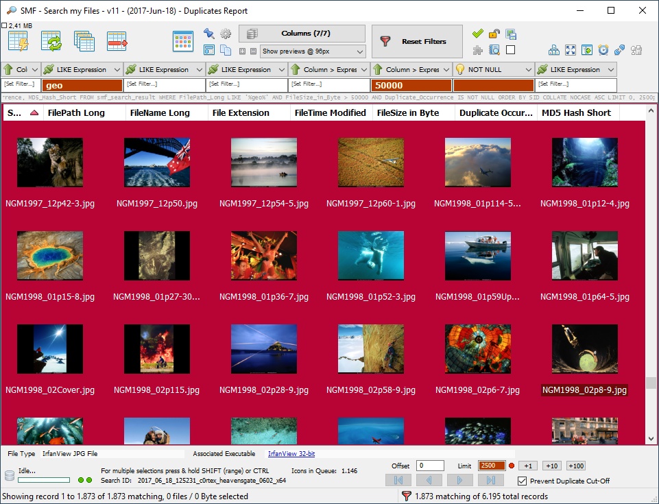 - Search for duplicate pictures of a certain filesize / dimension